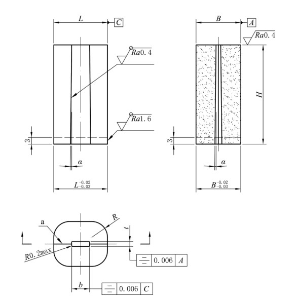 | t±0.002 | b±0.002 | L+0.005 +0.003 | B+0.005 +0.003 | H±0.02 | R | |||||||